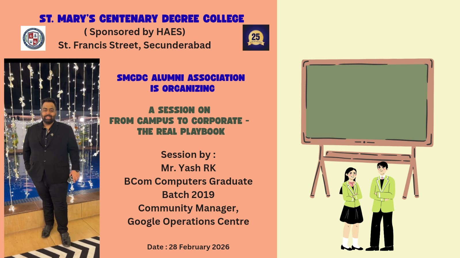 Strategically located just 1 km from Secunderabad Railway Station, SMCDC is easily accessible and continues to be the preferred choice for students from both urban and rural backgrounds. The college is known for its robust academic framework, experienced faculty, and student-centric approach to learning that fosters strong conceptual understanding.